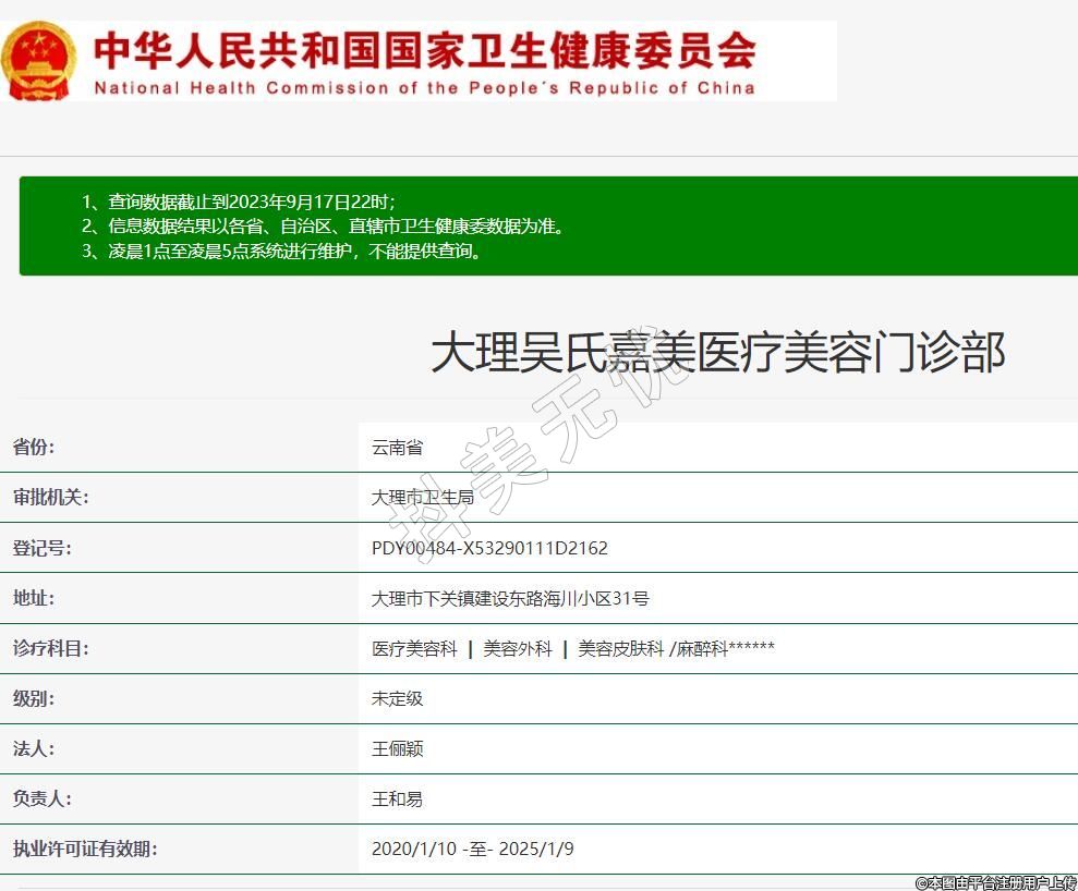 大理吳氏嘉美醫(yī)療美容門診部,診療科目:醫(yī)療美容科 | 美容外科 | 美容皮膚科 /麻醉科******