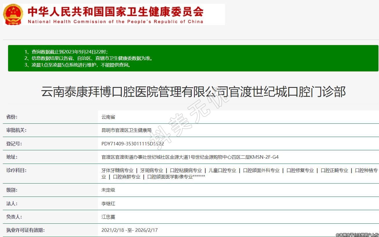 云南泰康拜博口腔醫(yī)院管理有限公司官渡世紀(jì)城口腔門(mén)診部