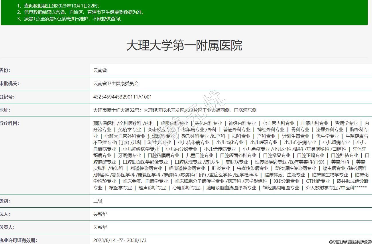 執(zhí)業(yè)許可證有效期:2023/8/14 -至- 2038/1/3