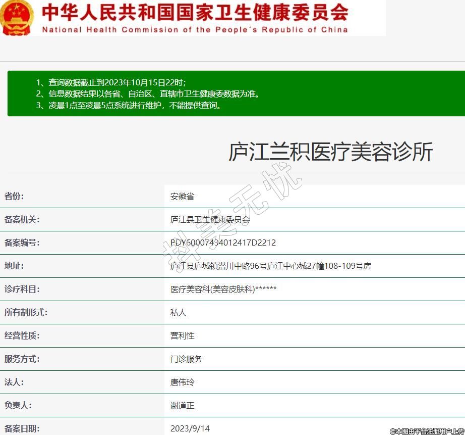 廬江蘭積醫(yī)療美容診所,診療科目:醫(yī)療美容科(美容皮膚科)******