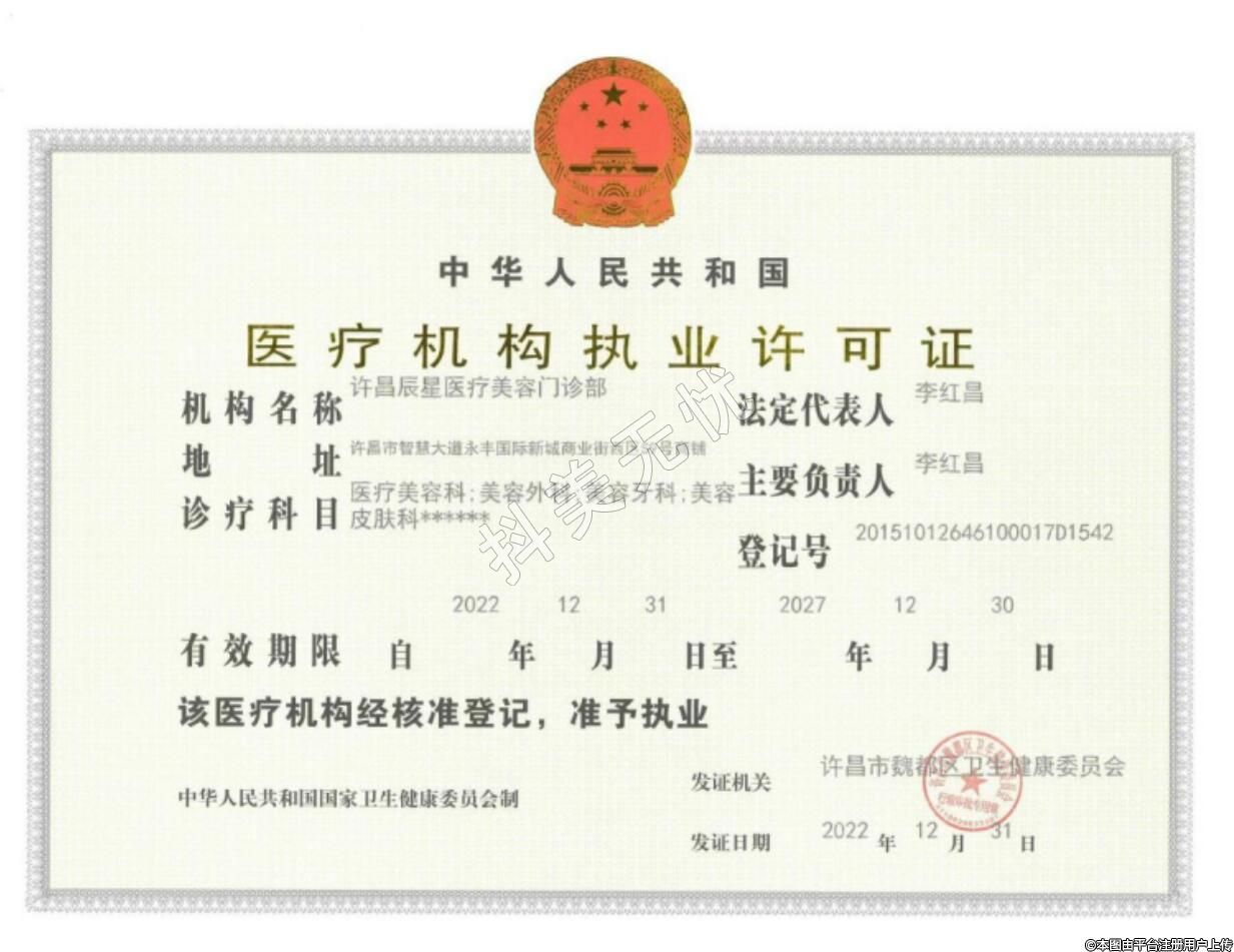 機構(gòu)名稱許昌辰星醫(yī)療美容門診部