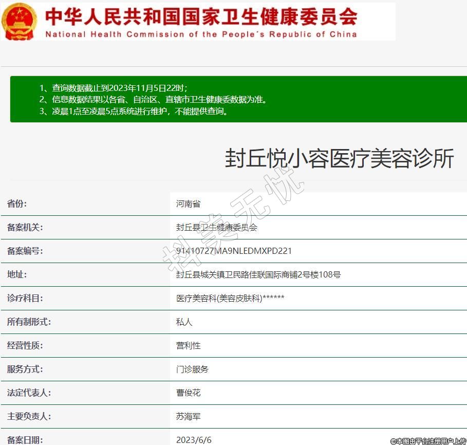封丘悅小容醫(yī)療美容診所,診療科目:醫(yī)療美容科(美容皮膚科)******