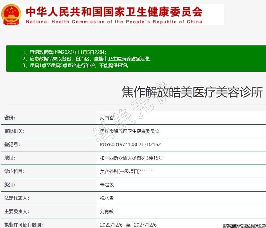 審批機關(guān):焦作市解放區(qū)衛(wèi)生健康委員會