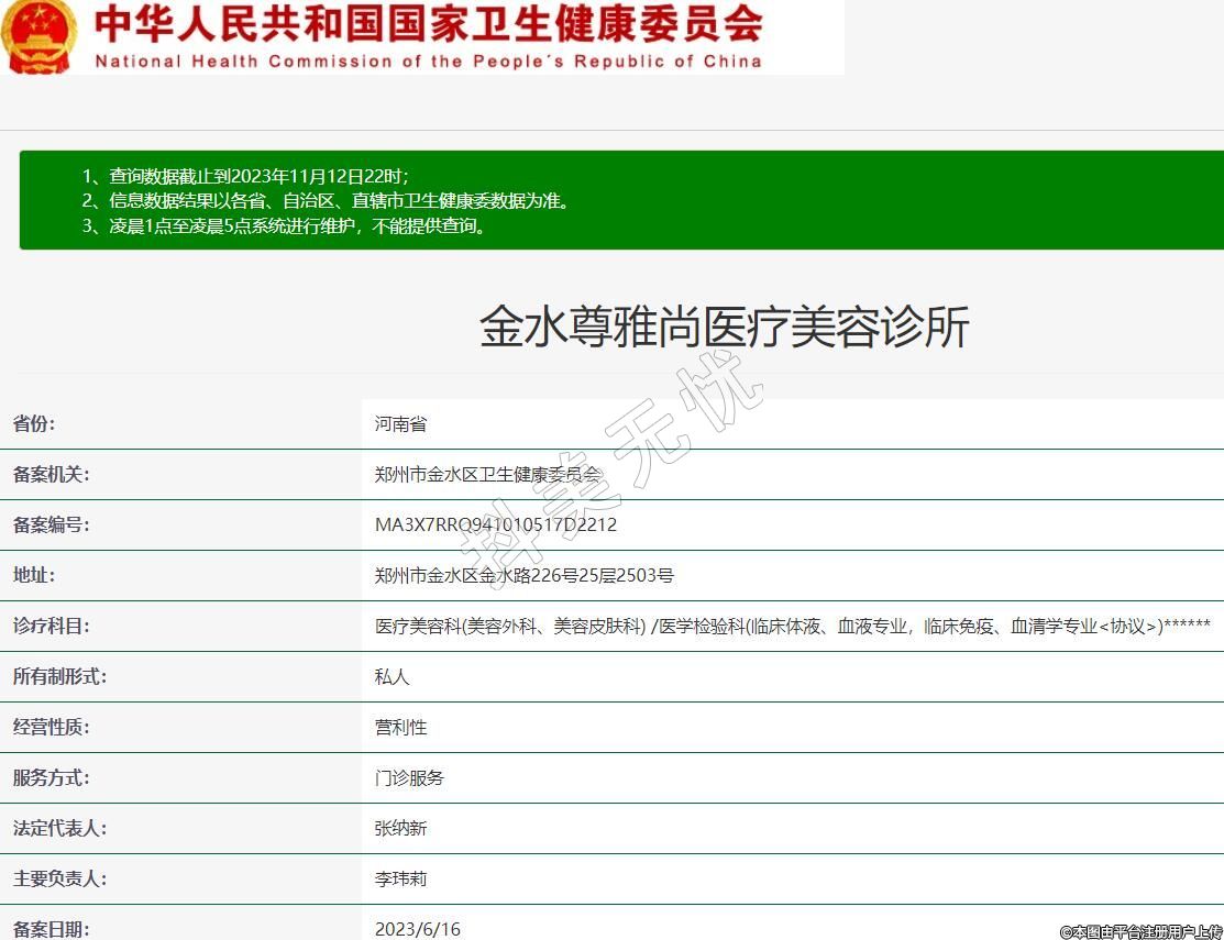 備案機關:鄭州市金水區(qū)衛(wèi)生健康委員會