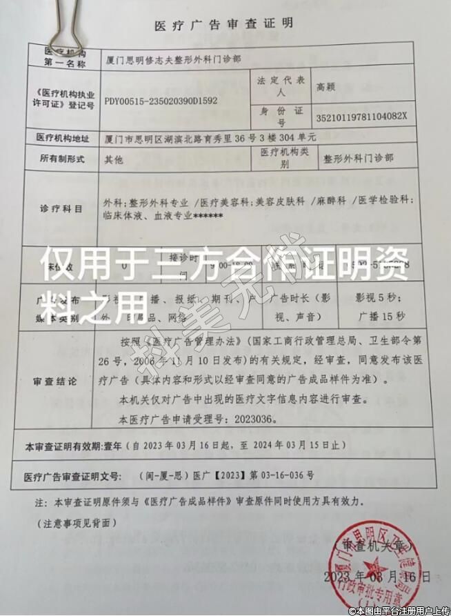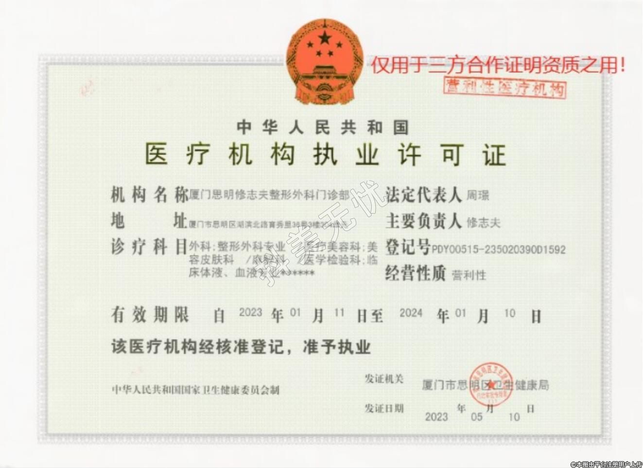 發(fā)證機關:廈門市思明區(qū)衛(wèi)生健康局