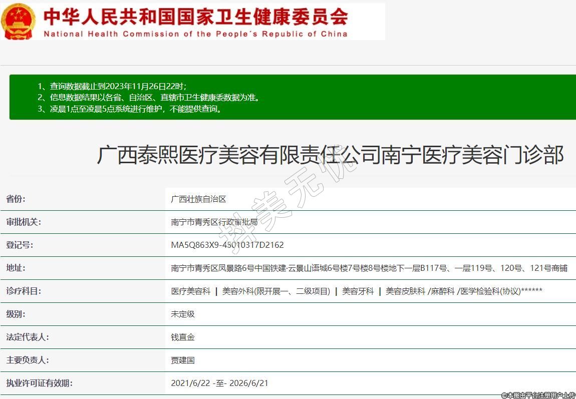 廣西泰熙醫(yī)療美容有限責任公司南寧醫(yī)療美容門診部