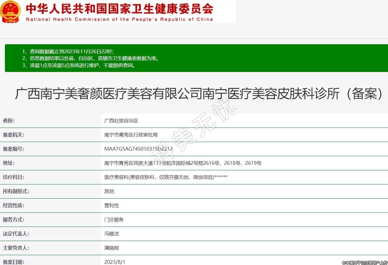 廣西南寧美奢顏醫(yī)療美容有限公司南寧醫(yī)療美容皮膚科診所(備案)