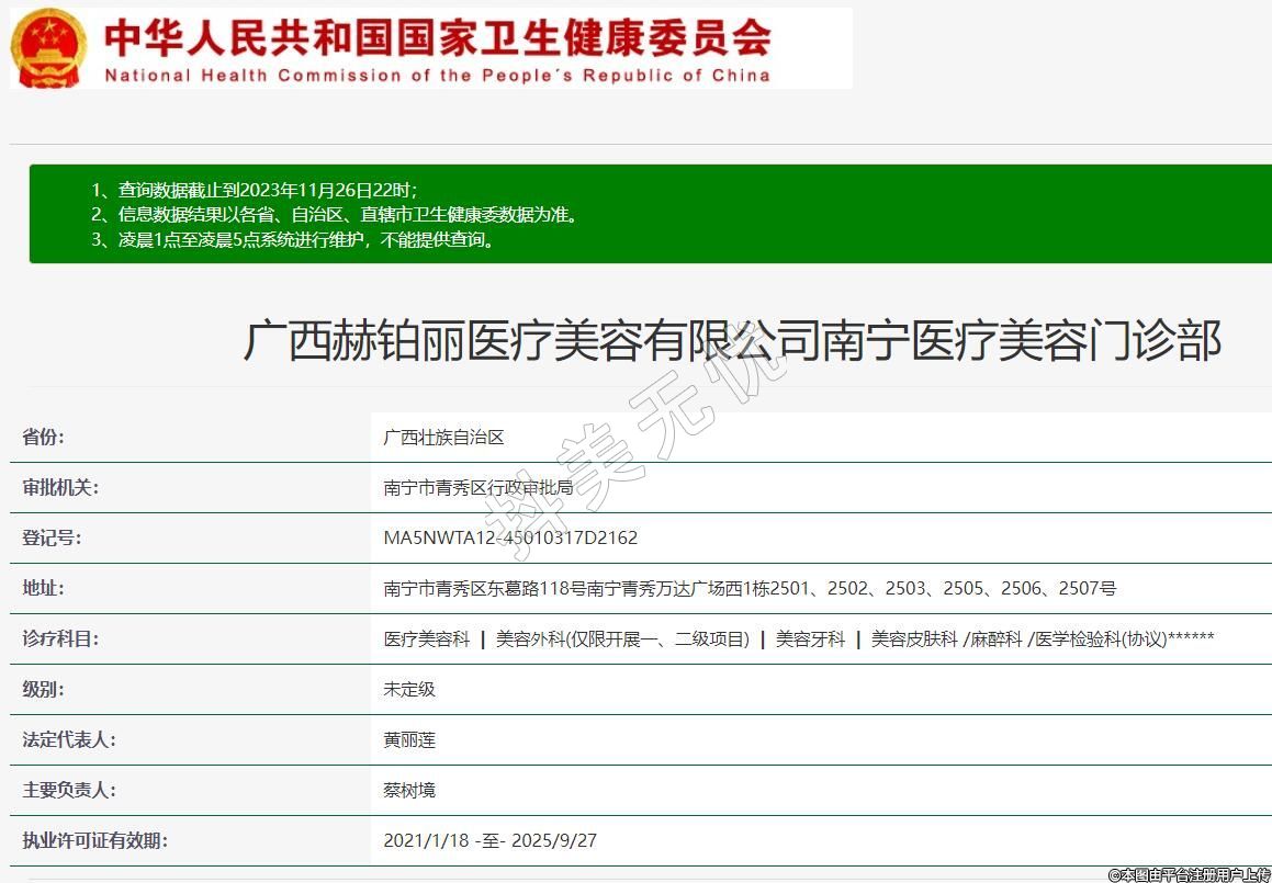 廣西赫鉑麗醫(yī)療美容有限公司南寧醫(yī)療美容門診部