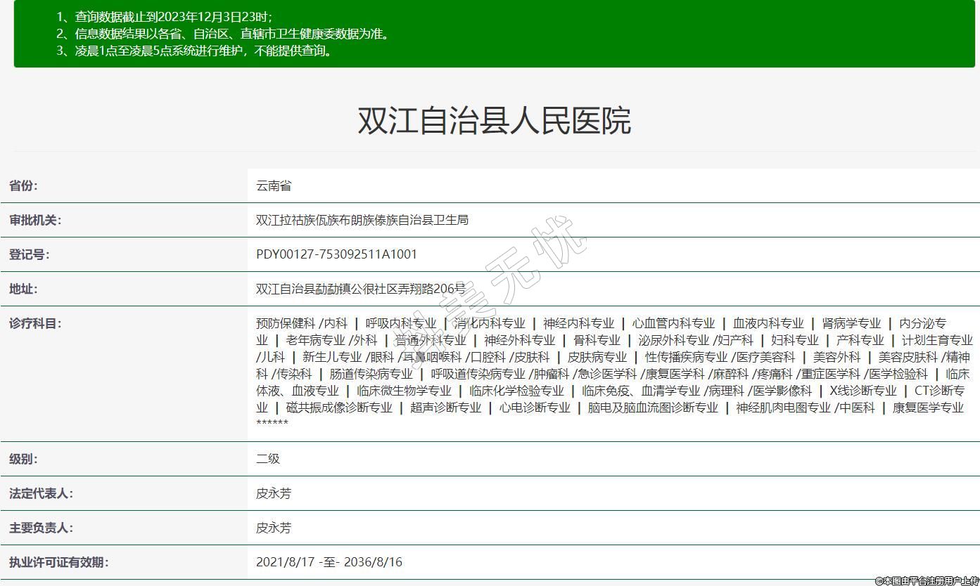 審批機關(guān):雙江拉祜族佤族布朗族傣族自治縣衛(wèi)生局
