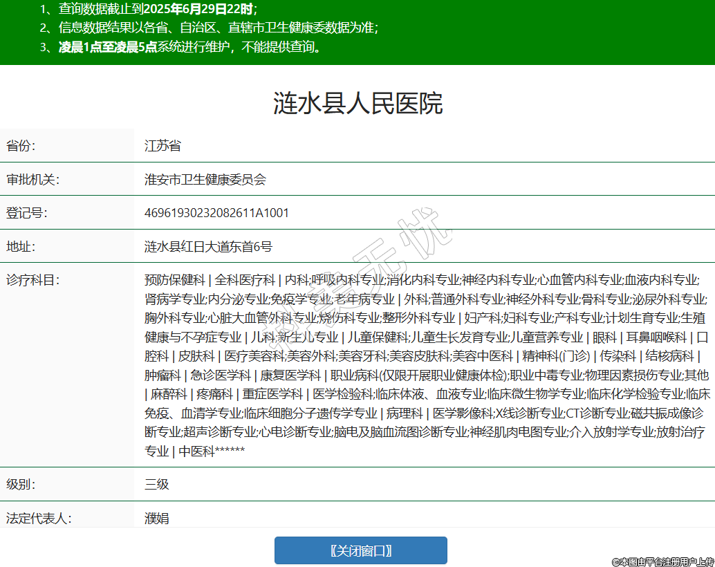 省份:江蘇省審批機(jī)關(guān):淮安市衛(wèi)生健康委員會(huì)登記號(hào):46961930232082611A1001地址:漣水縣紅日大道東首6號(hào)診療科目:預(yù)防保健科 | 全科醫(yī)療科 | 內(nèi)科;呼吸內(nèi)科專業(yè);消化內(nèi)科專業(yè);神經(jīng)內(nèi)科專業(yè);心血管內(nèi)科專業(yè);血液內(nèi)科專業(yè);腎病學(xué)專業(yè);內(nèi)分泌專業(yè);免疫學(xué)專業(yè);老年病專業(yè) | 外科;普通外科專業(yè);神經(jīng)外科專業(yè);骨科專業(yè);泌尿外科專業(yè);胸外科專業(yè);心臟大血管外科專業(yè);燒傷科專業(yè);整形外科專業(yè) | 婦產(chǎn)科;婦科專業(yè);產(chǎn)科專業(yè);計(jì)劃生育專業(yè);生殖健康與不孕癥專業(yè) | 兒科;新生兒專業(yè) | 兒童保健科;兒童生長發(fā)育專業(yè);兒童營養(yǎng)專業(yè) | 眼科 | 耳鼻咽喉科 | 口腔科 | 皮膚科 | 醫(yī)療美容科;美容外科;美容牙科;美容皮膚科;美容中醫(yī)科 | 精神科(門診) | 傳染科 | 結(jié)核病科 | 腫瘤科 | 急診醫(yī)學(xué)科 | 康復(fù)醫(yī)學(xué)科 | 職業(yè)病科(僅限開展職業(yè)健康體檢);職業(yè)中毒專業(yè);物理因素?fù)p傷專業(yè);其他 | 麻醉科 | 疼痛科 | 重癥醫(yī)學(xué)科 | 醫(yī)學(xué)檢驗(yàn)科;臨床體液、血液專業(yè);臨床微生物學(xué)專業(yè);臨床化學(xué)檢驗(yàn)專業(yè);臨床免疫、血清學(xué)專業(yè);臨床細(xì)胞分子遺傳學(xué)專業(yè) | 病理科 | 醫(yī)學(xué)影像科;X線診斷專業(yè);CT診斷專業(yè);磁共振成像診斷專業(yè);超聲診斷專業(yè);心電診斷專業(yè);腦電及腦血流圖診斷專業(yè);神經(jīng)肌肉電圖專業(yè);介入放射學(xué)專業(yè);放射治療專業(yè) | 中醫(yī)科******級別:三級法定代表人:濮娟主要負(fù)責(zé)人:濮娟執(zhí)業(yè)許可證有效期:2024/09/12 -至- 2035/08/11 -