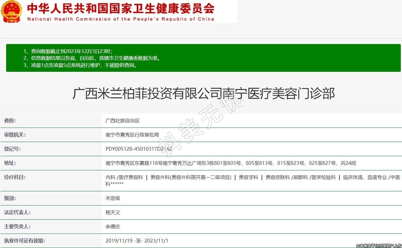 廣西米蘭柏菲投資有限公司南寧醫(yī)療美容門診部