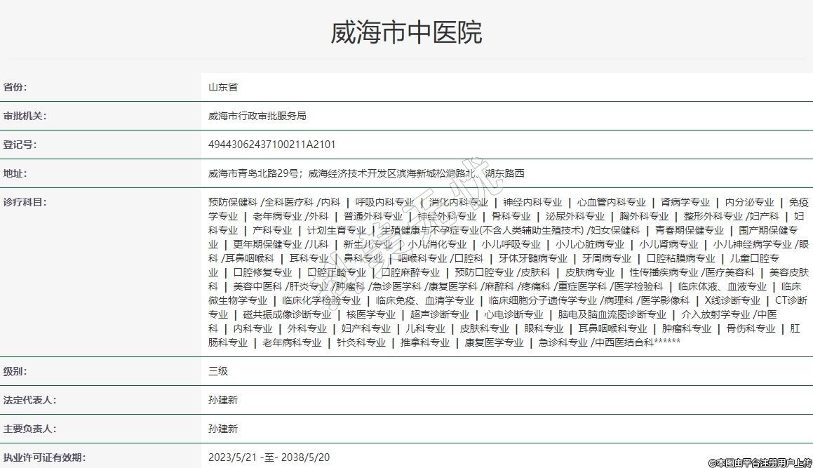 執(zhí)業(yè)許可證有效期:2023/5/21 -至- 2038/5/20