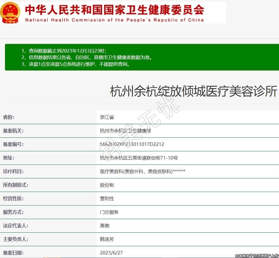 備案機關:杭州市余杭區(qū)衛(wèi)生健康局