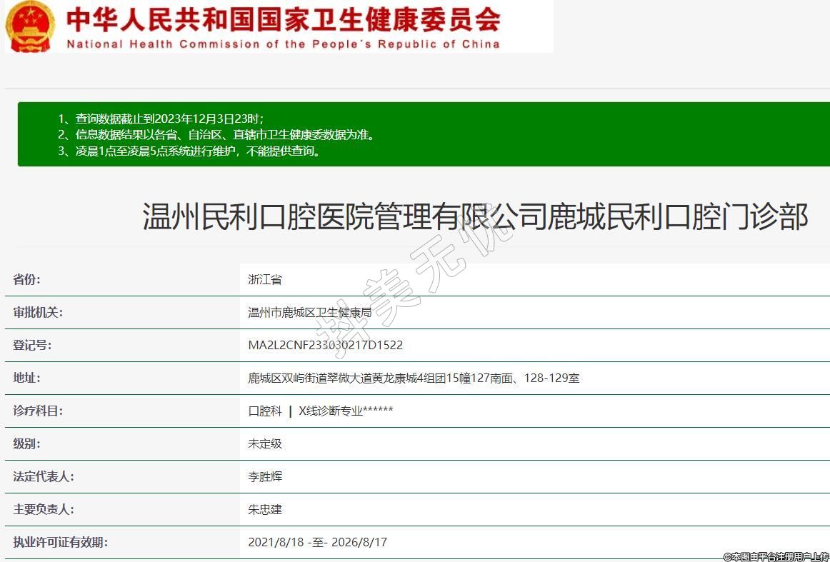 溫州民利口腔醫(yī)院管理有限公司鹿城民利口腔門診部