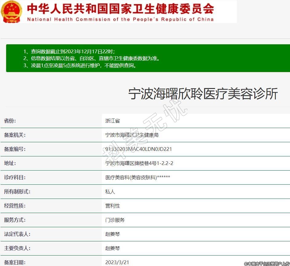 備案機(jī)關(guān):寧波市海曙區(qū)衛(wèi)生健康局