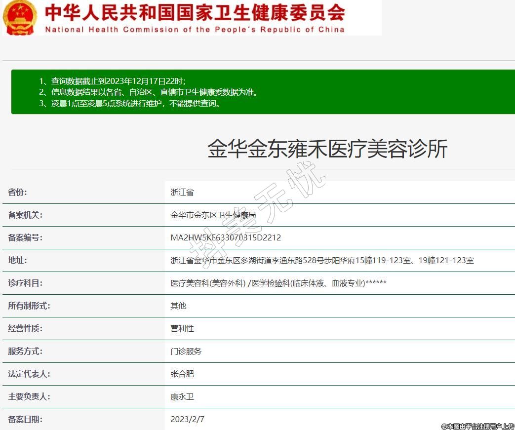 備案機(jī)關(guān):金華市金東區(qū)衛(wèi)生健康局