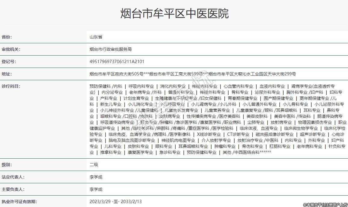 執(zhí)業(yè)許可證有效期:2023/3/29 -至- 2033/2/13
