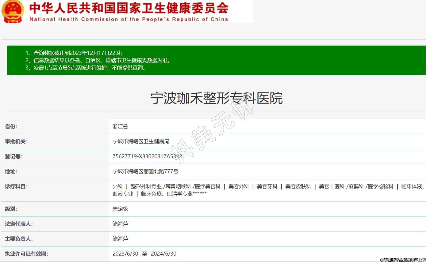 審批機關:寧波市海曙區(qū)衛(wèi)生健康局