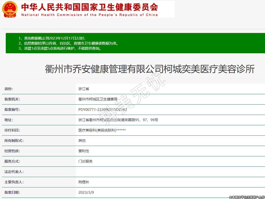 衢州市喬安健康管理有限公司柯城奕美醫(yī)療美容診所
