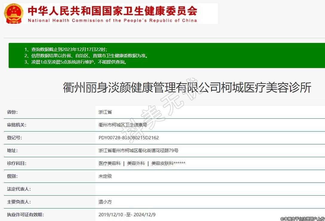 衢州麗身淡顏健康管理有限公司柯城醫(yī)療美容診所