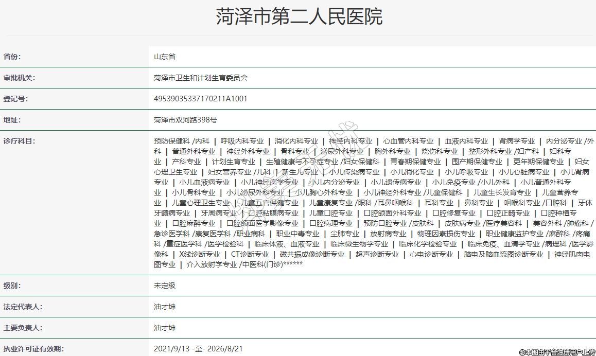執(zhí)業(yè)許可證有效期:2021/9/13 -至- 2026/8/21