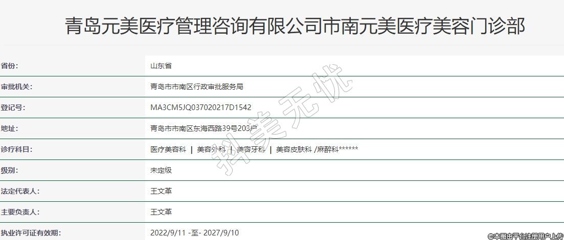 青島元美醫(yī)療管理咨詢有限公司市南元美醫(yī)療美容門診部