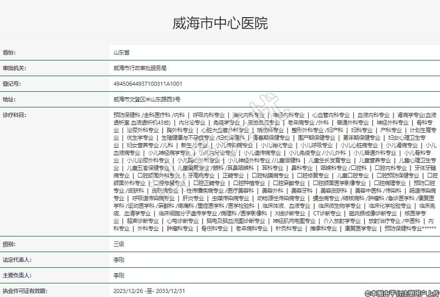 執(zhí)業(yè)許可證有效期:2023/12/26 -至- 2033/12/31