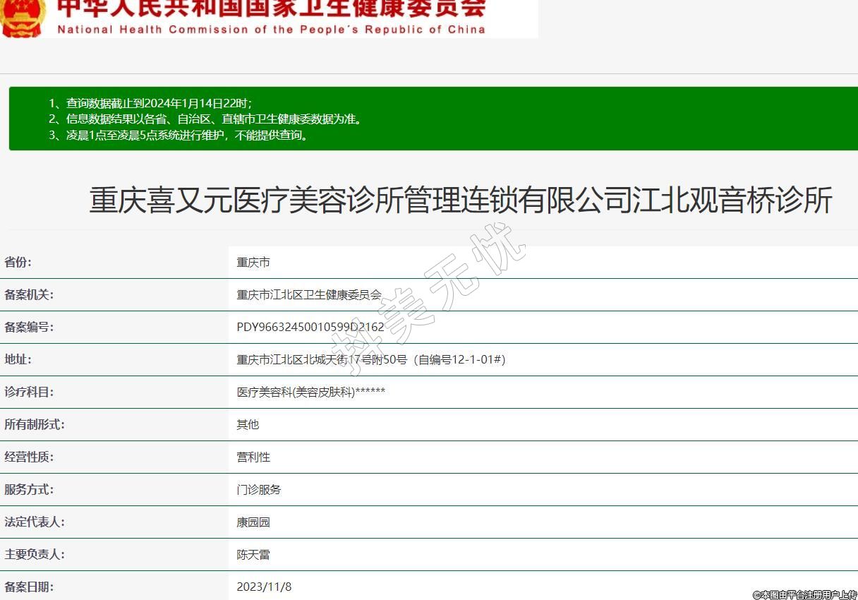 重慶喜又元醫(yī)療美容診所管理連鎖有限公司江北觀音橋診所