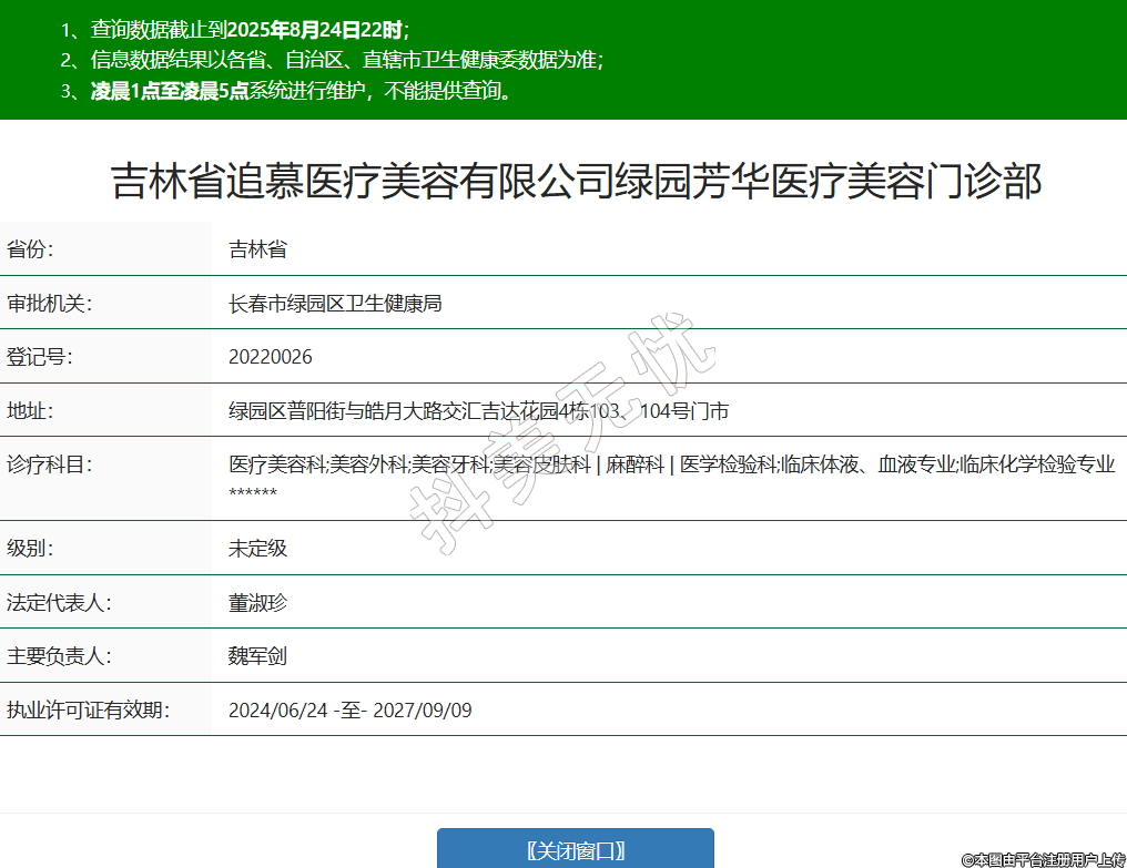 吉林省追慕醫(yī)療美容有限公司綠園芳華醫(yī)療美容門診部