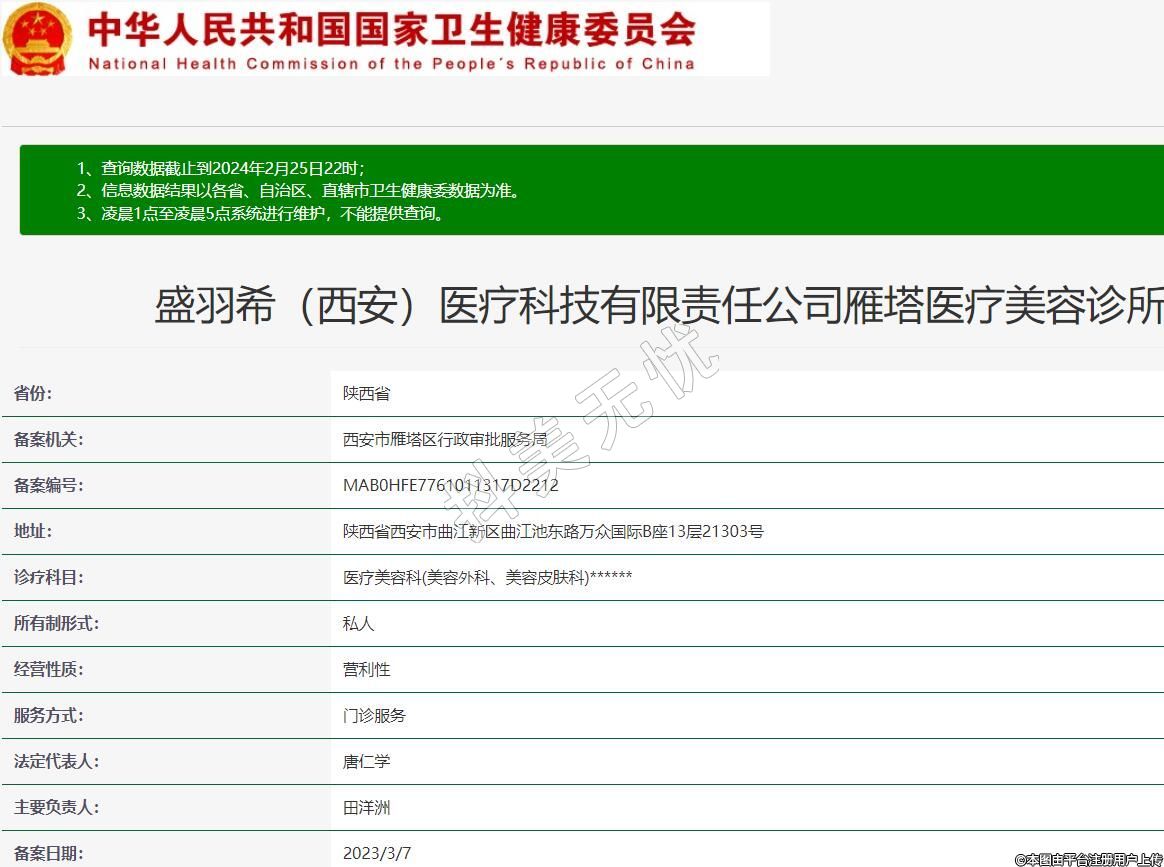 盛羽希(西安)醫(yī)療科技有限責(zé)任公司雁塔醫(yī)療美容診所