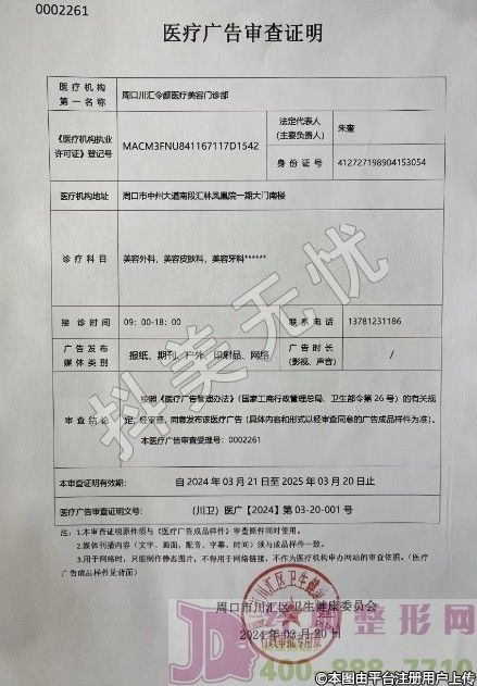 機(jī)構(gòu)名稱:周口川匯令顏醫(yī)療美容門診部