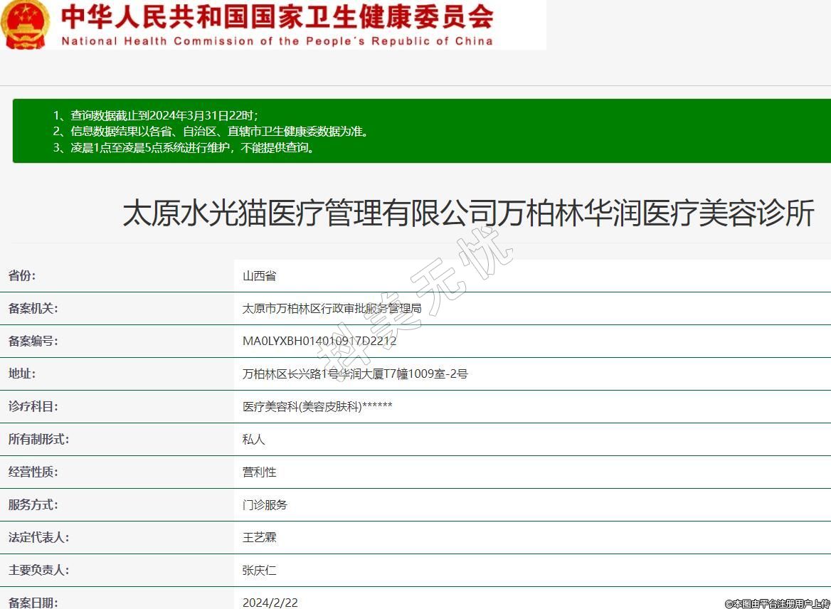 太原水光貓醫(yī)療管理有限公司萬柏林華潤醫(yī)療美容診所