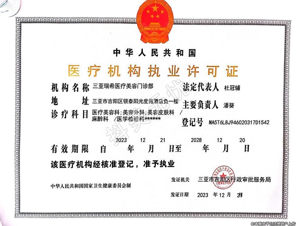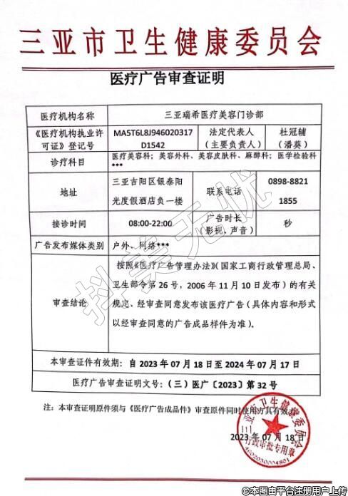 機構(gòu)名稱:三亞瑞希醫(yī)療美容門診部