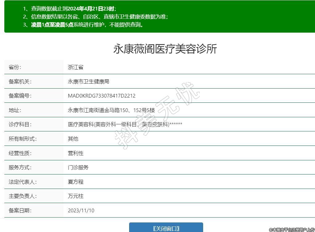 永康薇閣醫(yī)療美容診所,診療科目:醫(yī)療美容科(美容外科一級科目,美容皮膚科)******
