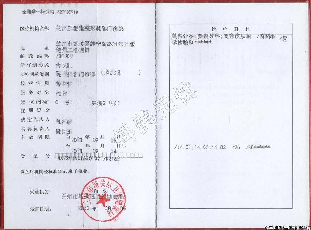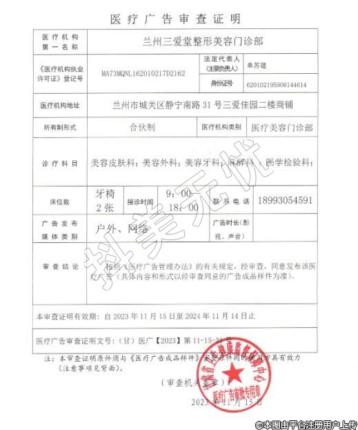 醫(yī)療機構(gòu)名稱:蘭州三愛堂整形美容門診部