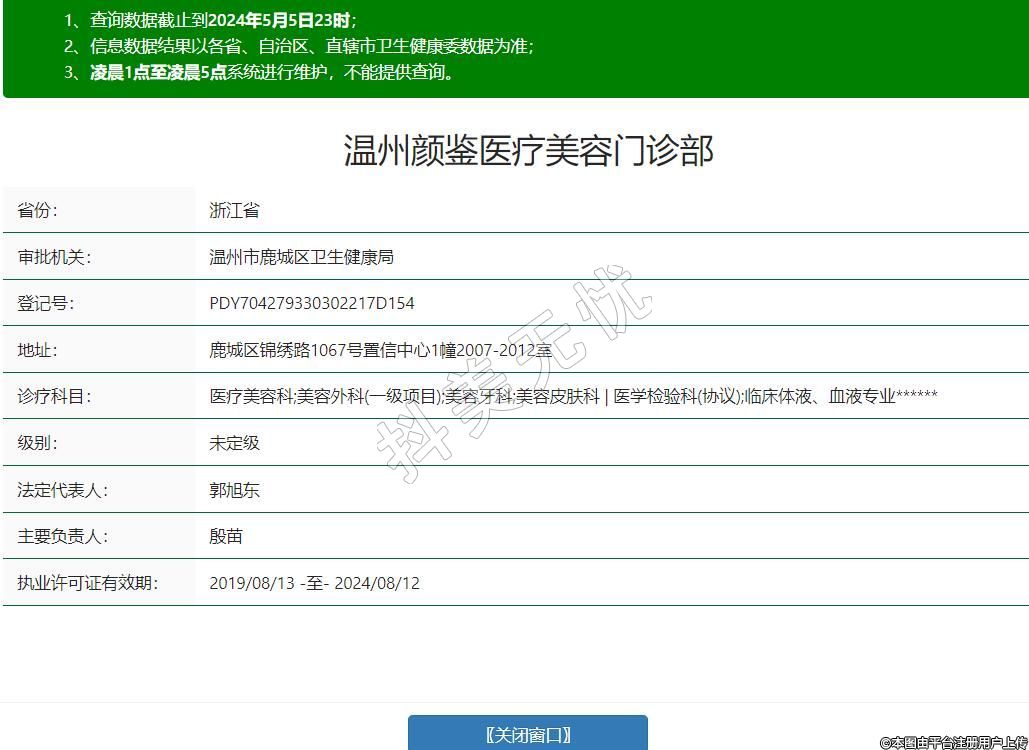 溫州顏鑒醫(yī)療美容門診部,診療科目:醫(yī)療美容科;美容外科(一級項目);美容牙科;美容皮膚科 | 醫(yī)學檢驗科(協議);臨床體液、血液專業(yè)******