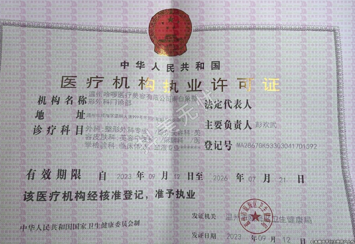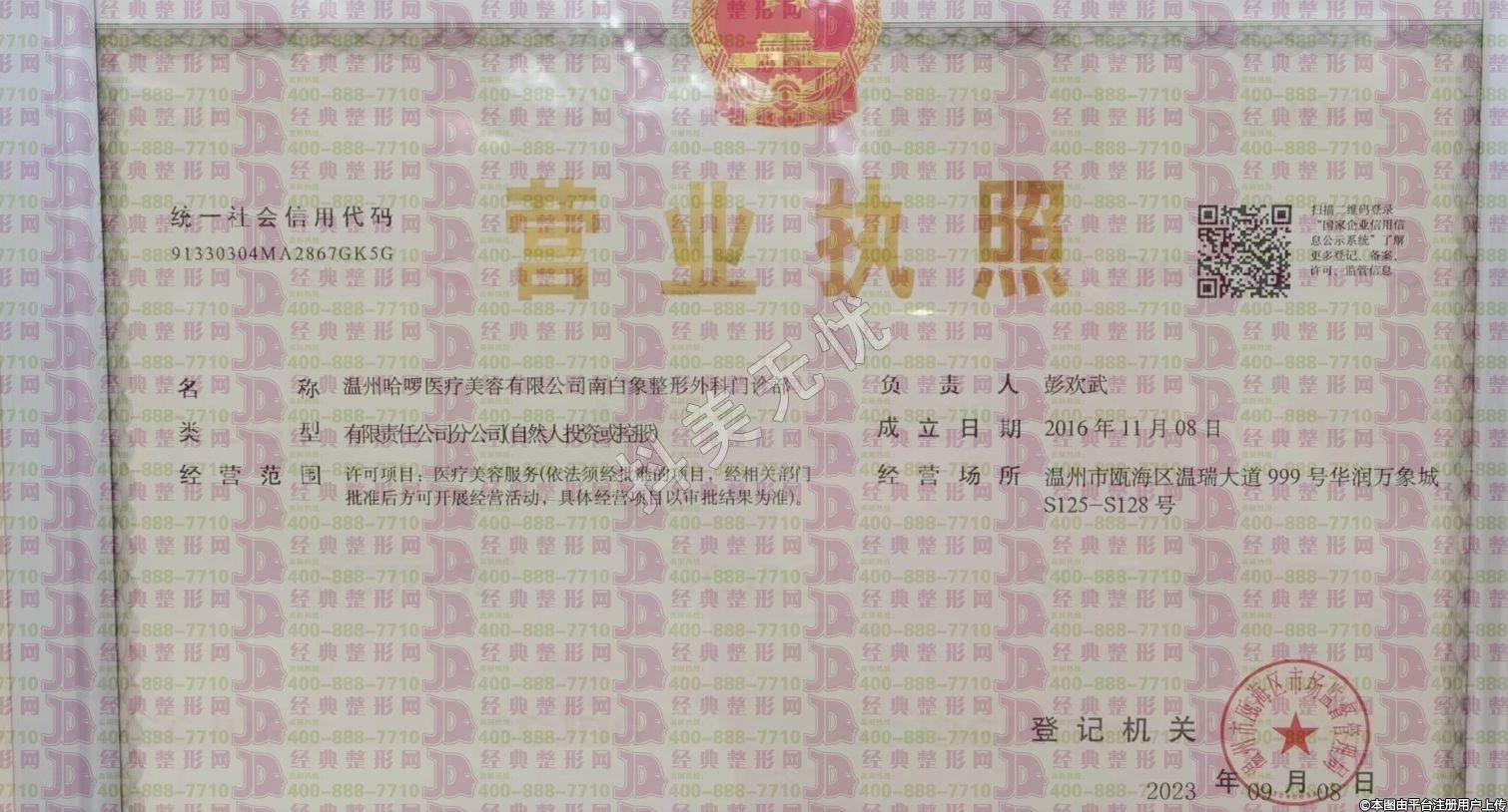 機構(gòu)名稱:溫州哈啰醫(yī)療美容有限公司南白象整形外科門診部
