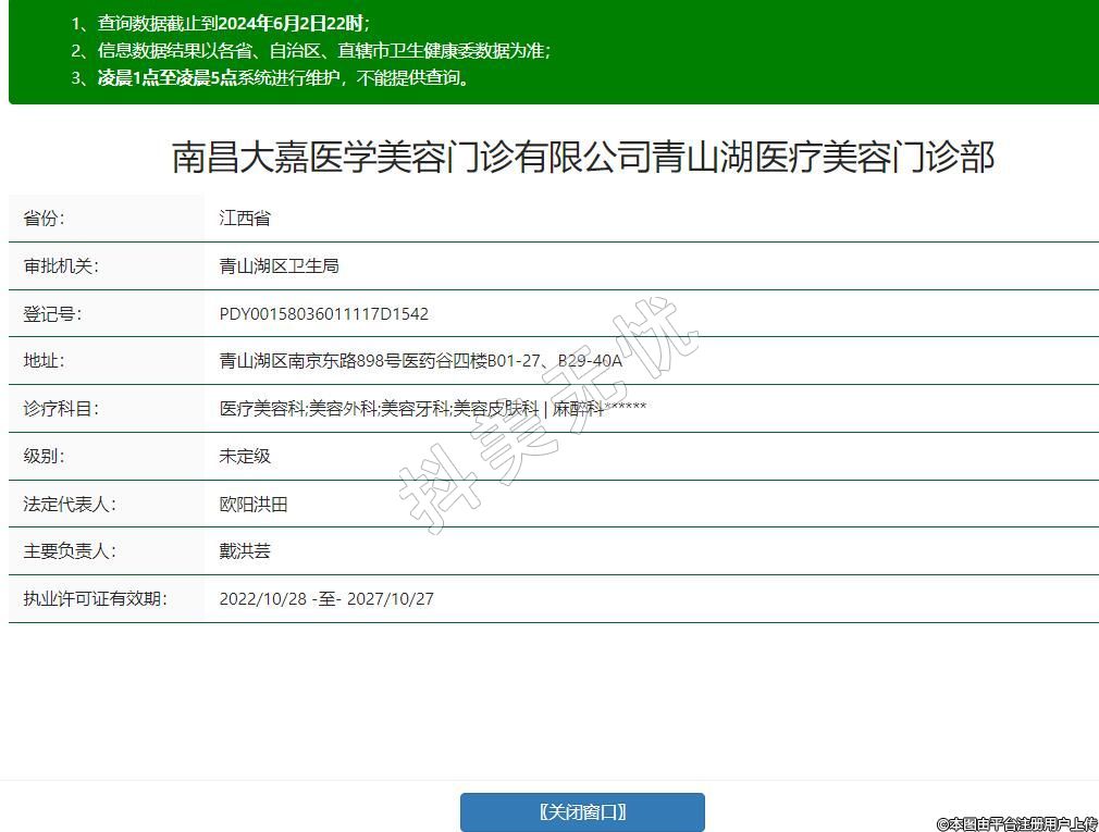 南昌大嘉醫(yī)學美容門診有限公司青山湖醫(yī)療美容門診部