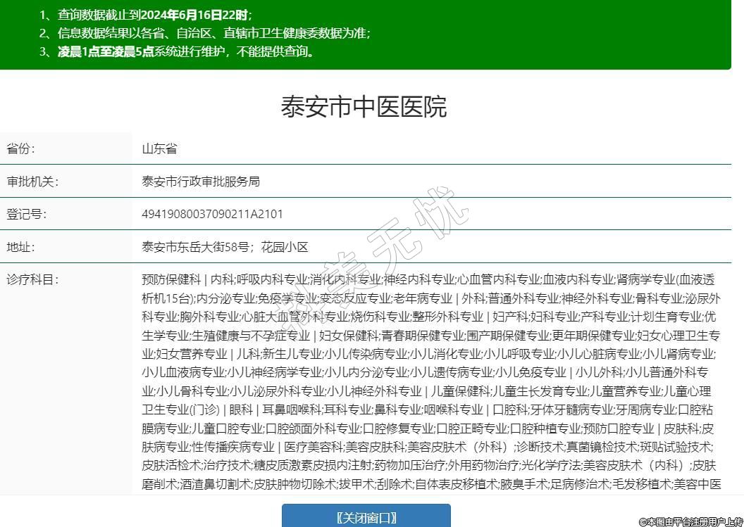 預防保健科 | 內科;呼吸內科專業(yè);消化內科專業(yè);神經內科專業(yè);心血管內科專業(yè);血液內科專業(yè);腎病學專業(yè)(血液透析機15臺);內分泌專業(yè);免疫學專業(yè);變態(tài)反應專業(yè);老年病專業(yè) | 外科;普通外科專業(yè);神經外科專業(yè);骨科專業(yè);泌尿外科專業(yè);胸外科專業(yè);心臟大血管外科專業(yè);燒傷科專業(yè);整形外科專業(yè) | 婦產科;婦科專業(yè);產科專業(yè);計劃生育專業(yè);優(yōu)生學專業(yè);生殖健康與不孕癥專業(yè) | 婦女保健科;青春期保健專業(yè);圍產期保健專業(yè);更年期保健專業(yè);婦女心理衛(wèi)生專業(yè);婦女營養(yǎng)專業(yè) | 兒科;新生兒專業(yè);小兒傳染病專業(yè);小兒消化專業(yè);小兒呼吸專業(yè);小兒心臟病專業(yè);小兒腎病專業(yè);小兒血液病專業(yè);小兒神經病學專業(yè);小兒內分泌專業(yè);小兒遺傳病專業(yè);小兒免疫專業(yè) | 小兒外科;小兒普通外科專業(yè);小兒骨科專業(yè);小兒泌尿外科專業(yè);小兒神經外科專業(yè) | 兒童保健科;兒童生長發(fā)育專業(yè);兒童營養(yǎng)專業(yè);兒童心理衛(wèi)生專業(yè)(門診) | 眼科 | 耳鼻咽喉科;耳科專業(yè);鼻科專業(yè);咽喉科專業(yè) | 口腔科;牙體牙髓病專業(yè);牙周病專業(yè);口腔粘膜病專業(yè);兒童口腔專業(yè);口腔頜面外科專業(yè);口腔修復專業(yè);口腔正畸專業(yè);口腔種植專業(yè);預防口腔專業(yè) | 皮膚科;皮膚病專業(yè);性傳播疾病專業(yè) | 醫(yī)療美容科;美容皮膚科;美容皮膚術(外科);診斷技術;真菌鏡檢技術;斑貼試驗技術;皮膚活檢術;治療技術;糖皮質激素皮損內注射;藥物加壓治療;外用藥物治療;光化學療法;美容皮膚術(內科);皮膚磨削術;酒渣鼻切割術;皮膚腫物切除術;拔甲術;刮除術;自體表皮移植術;腋臭手術;足病修治術;毛發(fā)移植術;美容中醫(yī)科;針灸美容;針刺術;毫針術;三棱針術;皮膚針(梅花針)術;皮內針術;火針術;電針術;水針(穴位注射)術;炙術;耳針術;拔罐術;中醫(yī)推拿美容;中藥外治;其他中醫(yī)美容技術;穴位埋線療法;結扎法 | 臨床心理專業(yè) | 傳染科;腸道傳染病專業(yè);呼吸道傳染病專業(yè);肝炎專業(yè) | 腫瘤科 | 急診醫(yī)學科 | 康復醫(yī)學科 | 運動醫(yī)學科 | 麻醉科 | 疼痛科(門診) | 重癥醫(yī)學科 | 醫(yī)學檢驗科;臨床體液、血液專業(yè);臨床微生物學專業(yè);臨床化學檢驗專業(yè);臨床免疫、血清學專業(yè);臨床細胞分子遺傳學專業(yè) | 病理科 | 醫(yī)學影像科;X線診斷專業(yè);CT診斷專業(yè);磁共振成像診斷專業(yè);超聲診斷專業(yè);心電診斷專業(yè);腦電及腦血流圖診斷專業(yè);神經肌肉電圖專業(yè);介入放射學專業(yè) | 中醫(yī)科;內科專業(yè);外科專業(yè);婦產科專業(yè);兒科專業(yè);皮膚科專業(yè);眼科專業(yè);耳鼻咽喉科專業(yè);口腔科專業(yè);腫瘤科專業(yè);骨傷科專業(yè);肛腸科專業(yè);老年病科專業(yè);針灸科專業(yè);推拿科專業(yè);康復醫(yī)學專業(yè);急診科專業(yè);預防保健科專業(yè) | 中西醫(yī)結合科******