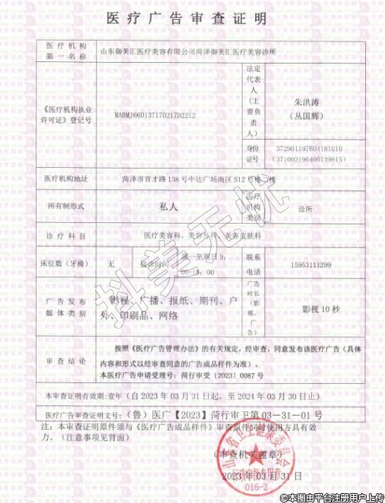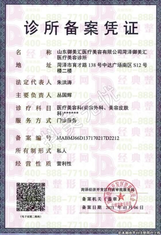 名稱:山東御美匯醫(yī)療美容有限公司菏澤御美匯醫(yī)療美容診所
