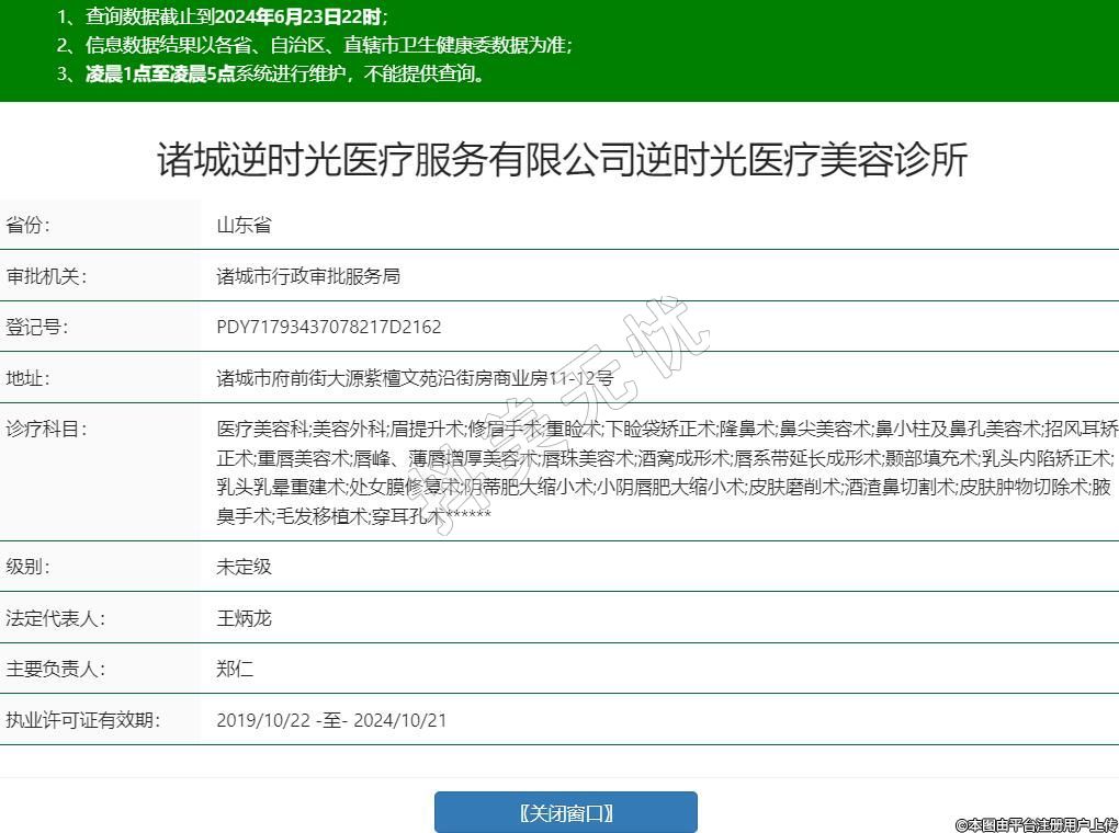 諸城逆時光醫(yī)療服務(wù)有限公司逆時光醫(yī)療美容診所