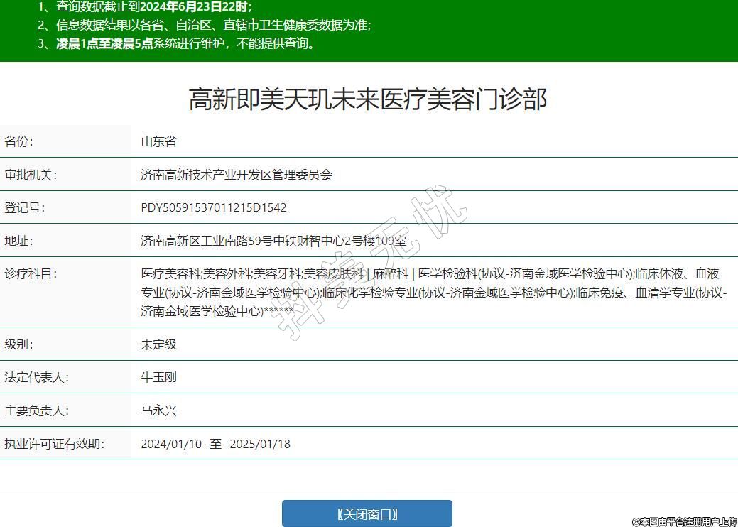 醫(yī)療美容科;美容外科;美容牙科;美容皮膚科 | 麻醉科 | 醫(yī)學(xué)檢驗(yàn)科(協(xié)議-濟(jì)南金域醫(yī)學(xué)檢驗(yàn)中心);臨床體液、血液專業(yè)(協(xié)議-濟(jì)南金域醫(yī)學(xué)檢驗(yàn)中心);臨床化學(xué)檢驗(yàn)專業(yè)(協(xié)議-濟(jì)南金域醫(yī)學(xué)檢驗(yàn)中心);臨床免疫、血清學(xué)專業(yè)(協(xié)議-濟(jì)南金域醫(yī)學(xué)檢驗(yàn)中心)******