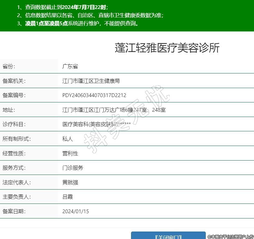 蓬江輕雅醫(yī)療美容診所,診療科目:醫(yī)療美容科(美容皮膚科)******