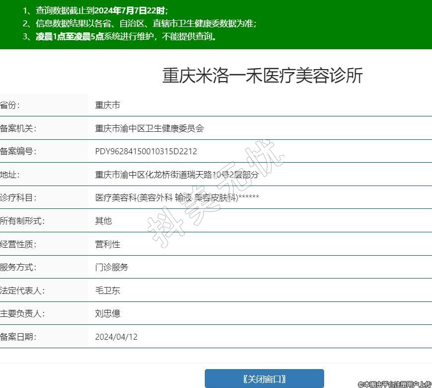 重慶米洛一禾醫(yī)療美容診所,診療科目:醫(yī)療美容科(美容外科 輸液 美容皮膚科)******