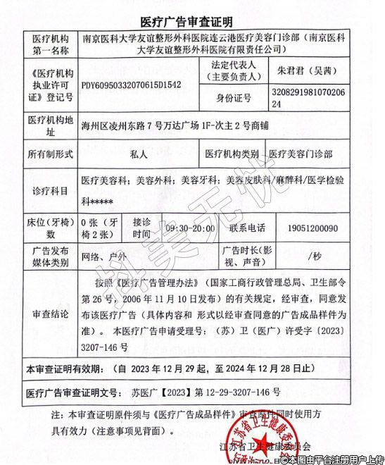 機(jī)構(gòu)名稱:南京醫(yī)科大學(xué)友誼整形外科醫(yī)院連云港醫(yī)療美容門診部(南京醫(yī)科大學(xué)友誼整形外科醫(yī)院有限責(zé)任公司)