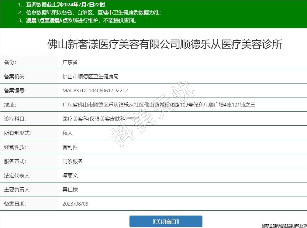 佛山新奢漾醫(yī)療美容有限公司順德樂從醫(yī)療美容診所