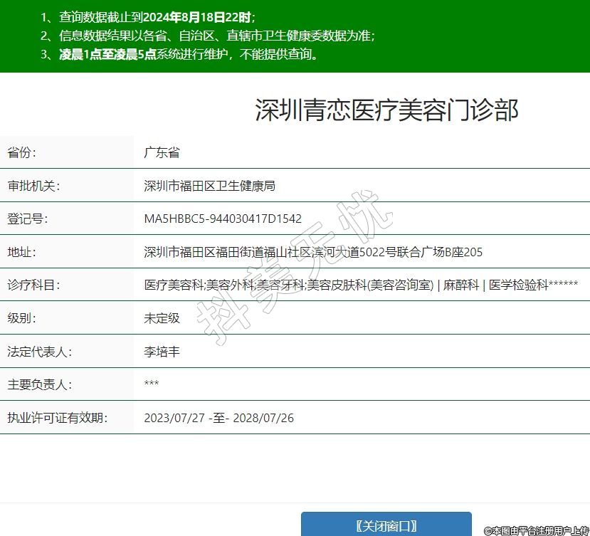 深圳青戀醫(yī)療美容門診部,診療科目:醫(yī)療美容科;美容外科;美容牙科;美容皮膚科(美容咨詢室) | 麻醉科 | 醫(yī)學(xué)檢驗科******
