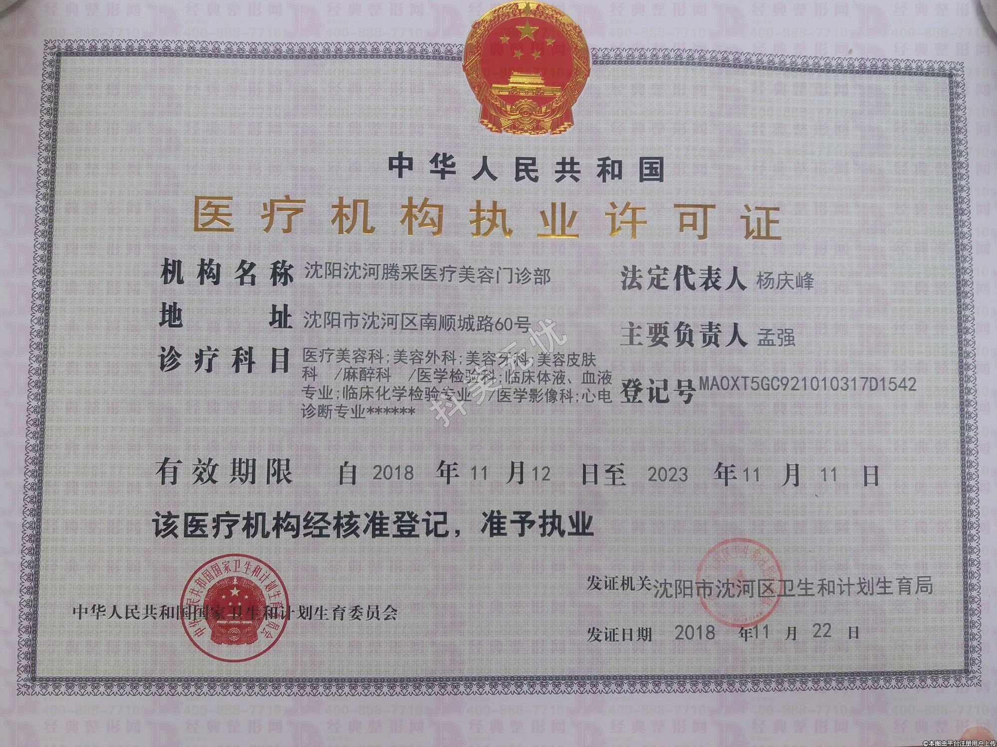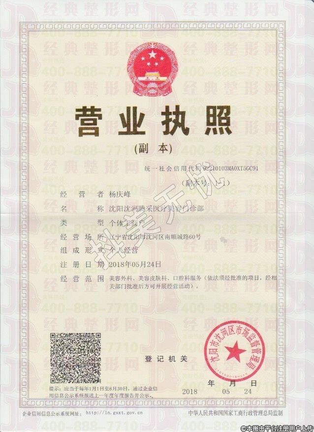 發(fā)證機關:沈陽市沈河區(qū)衛(wèi)生和計劃生育局