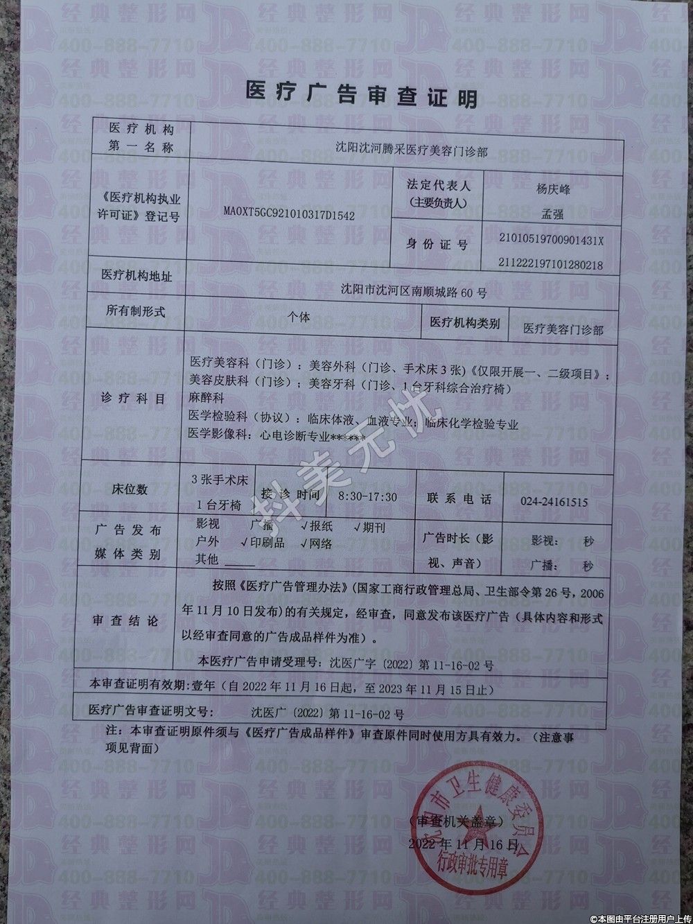 機構稱:沈陽沈河騰采療美容門診部
