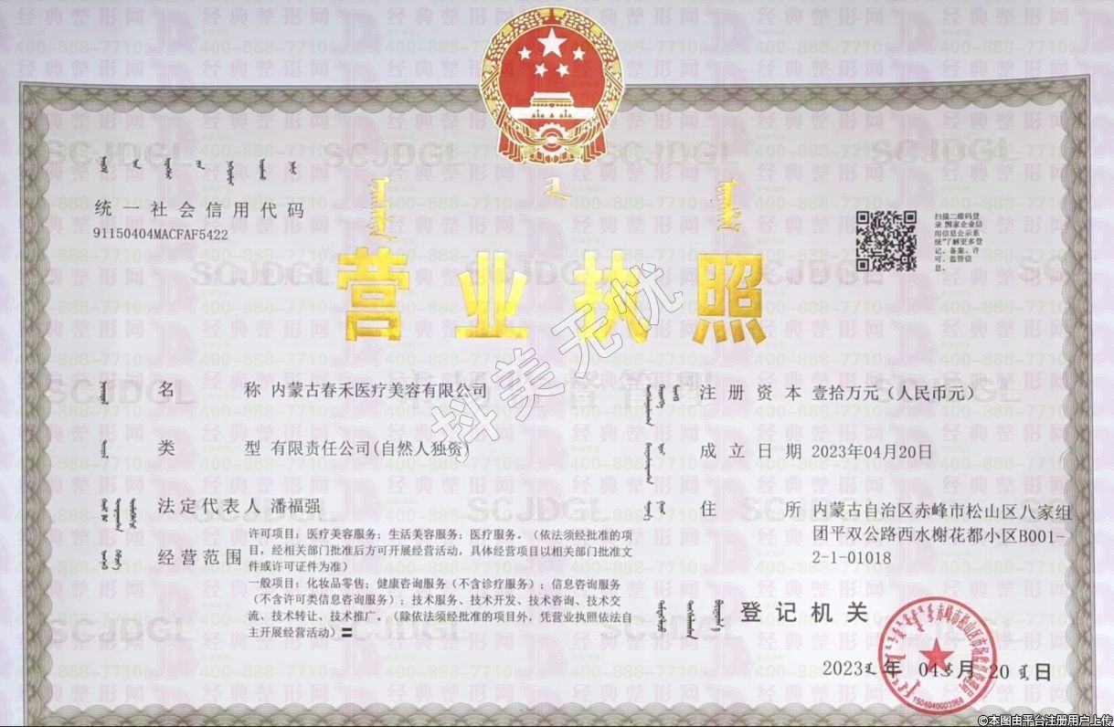 名稱:內蒙古春禾醫(yī)療美容有限公司醫(yī)療美容診稱所